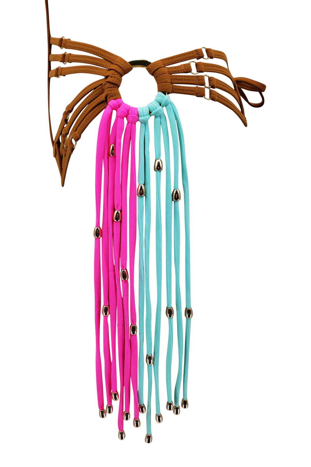 Each tassel is finished with adjustable gold beads, allowing you to control their length, sway, and impact — perfect for tailoring your resort look to the occasion. With over 3,600 customizable color combinations, including our exclusive Nude palette, you can switch them out to match your mood, contrast against your bikini, or layer multiple shades for an unexpected twist.